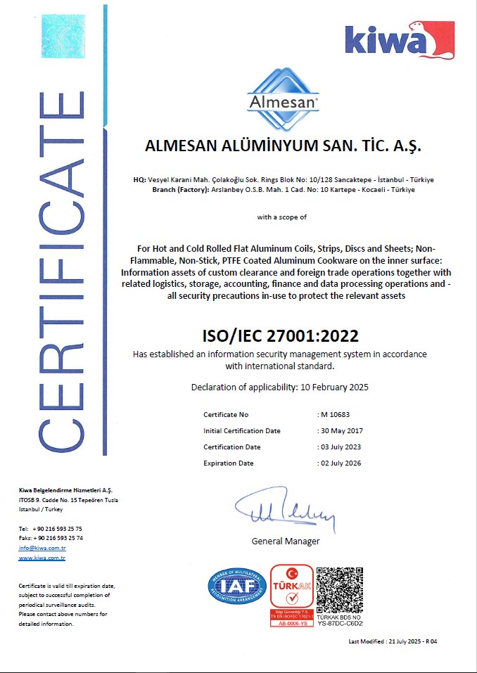 Direttiva sulle apparecchiature a pressione (2014/68/UE) Conformità del sistema di gestione della qualità per la produzione dei materiali